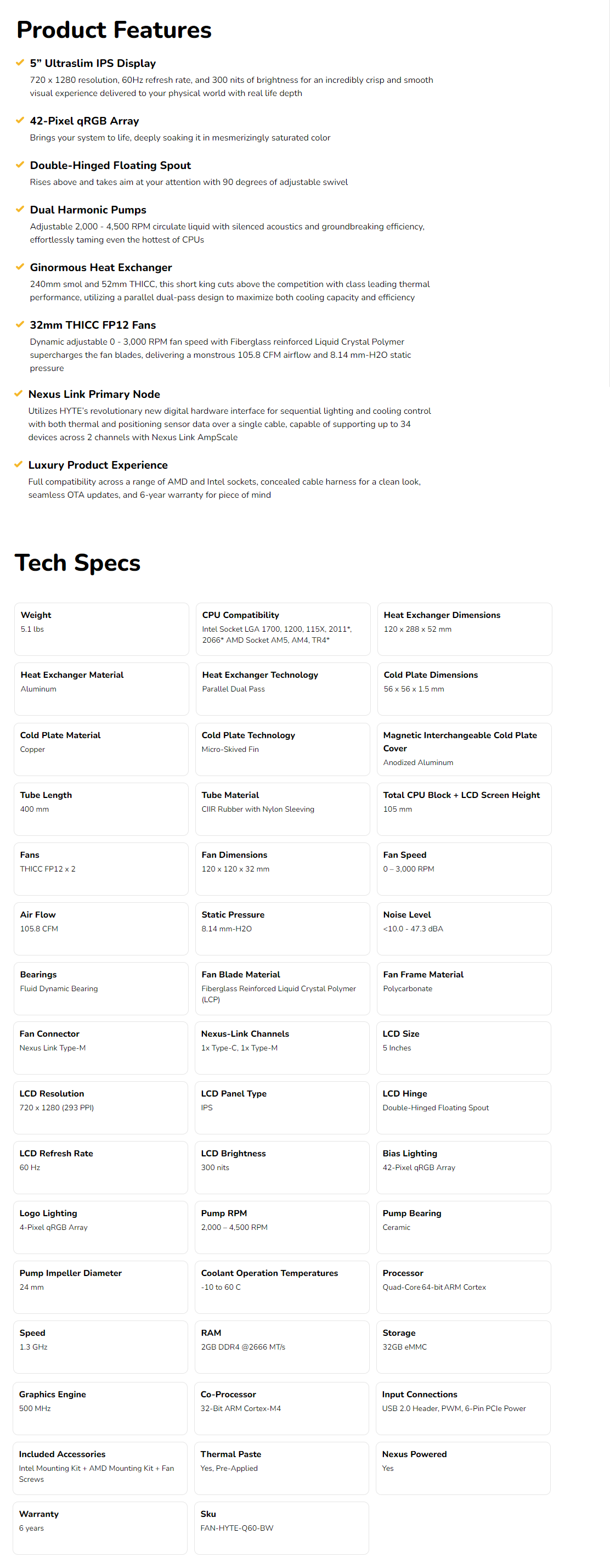 Hyte THICC Q60 Digital Processor Cooling Liquid CPU Cooler Intel/AMD 2x THICC FP12 Fans 720 x 1280 IPS LCD Display