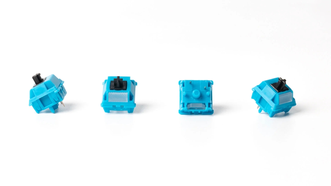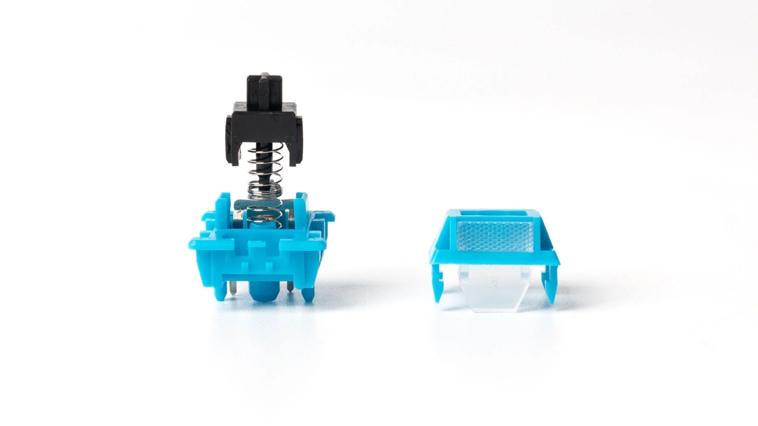 It features blue POM housing, providing excellent durability and a smooth surface, ensuring consistent performance over time. The stem is made from UPE material, known for its low friction and superior sliding capabilities, enhancing the overall typing smoothness.