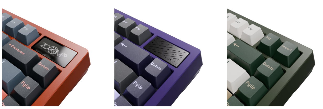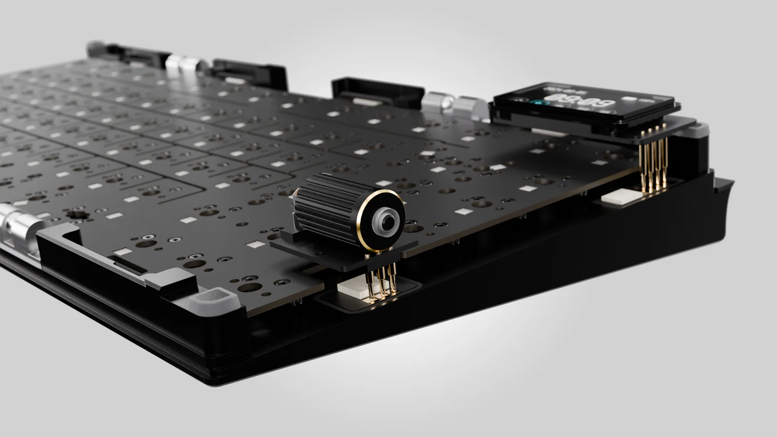 We used a scroll wheel knob to maintain a large screen while providing functionality. The screen can be swapped for badges or keycaps for more customization.