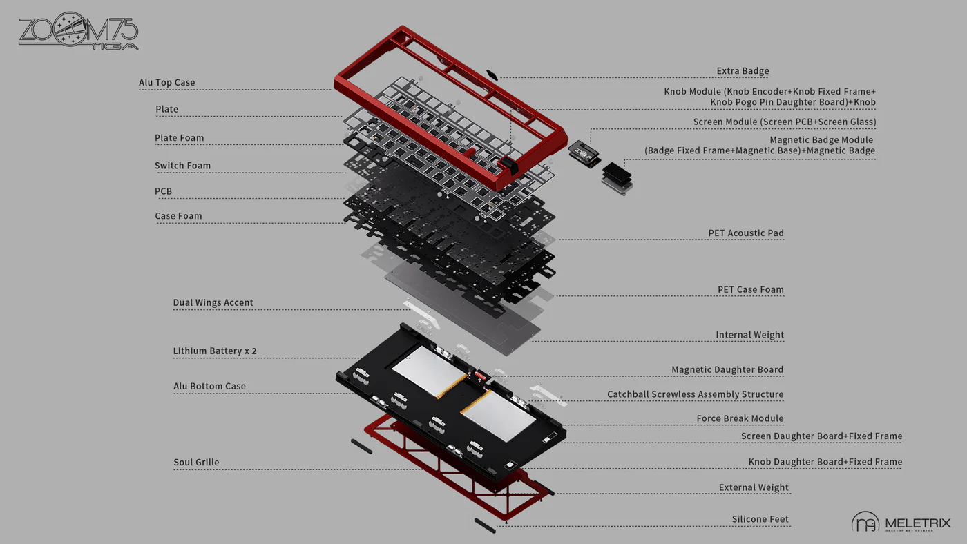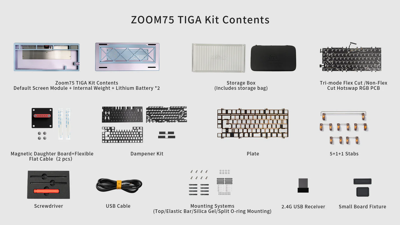 | Description | Meletrix ZOOM75 TIGA Custom Tri-mode Keyboard, WS PBT Gray Skies Keycaps, Milky Green |