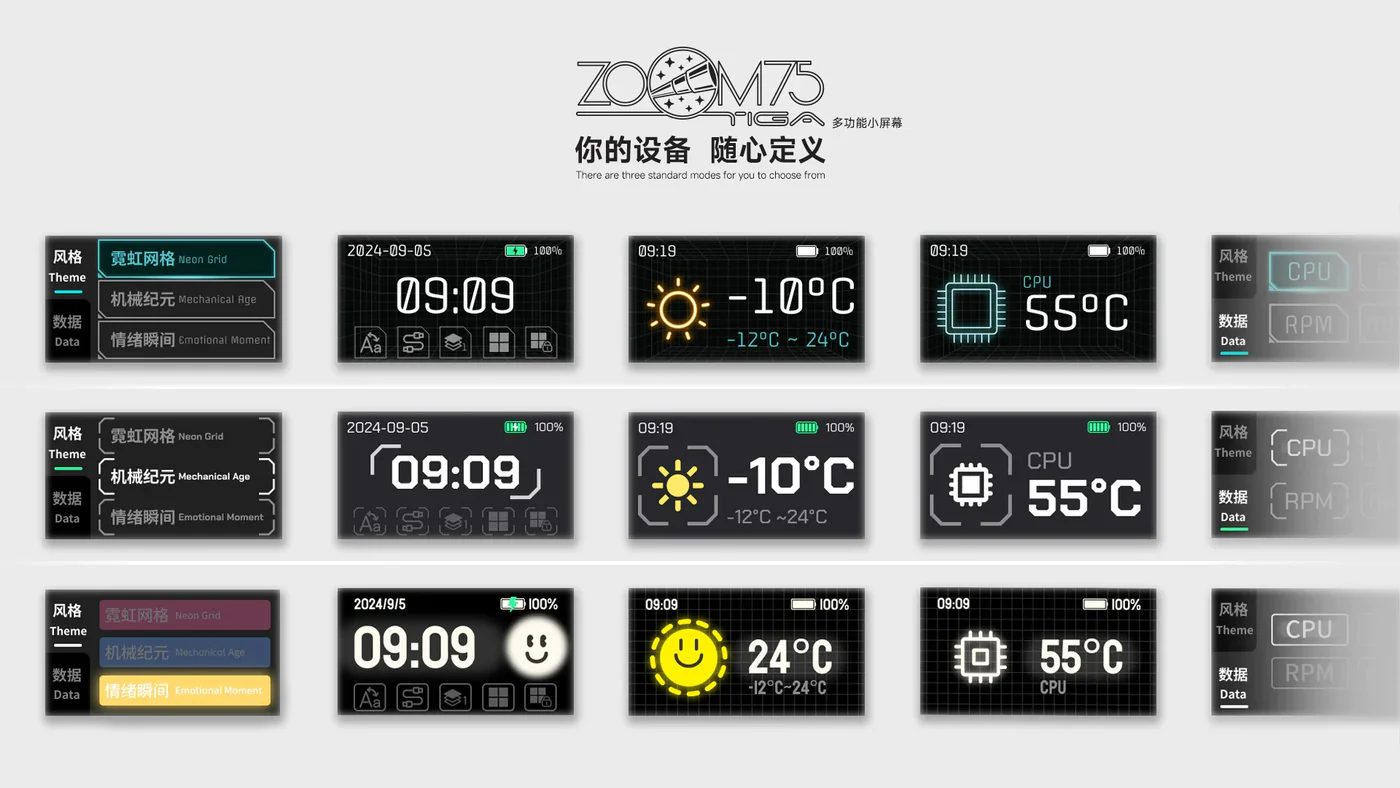 | Features | PCB:1.2 Tri-mode Flex cut Sound Dampener: Standard foam kit. Plate: POM 1. Effortless typing, offering you a kind of high quality and comfortable typing environment. 2.Screen Upgrade: Compared to a regular keyboard, The new screen reduces damage risk, doubles memory, increases transfer speed fourfold, and achieves 60 fps for smooth high-resolution display. 3.Upgraded Finish Treatment: the keyboard uses Acustatic, a cutting-edge electrostatic spray technology that delivers vibrant colors and superior consistency. The smooth, refined surface achieved by a 220-mesh fine spray coating offers a premium feel and finish. |